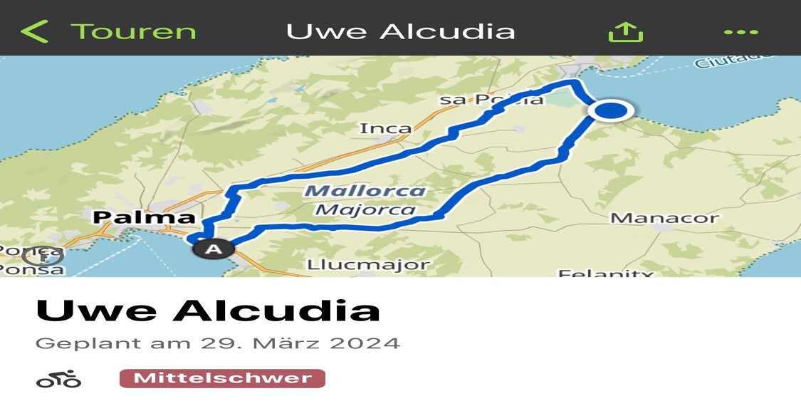 Jeden Tag machen wir eine Radtour. Die Radgruppe ist toll und sehr nett. Palma ist eine wunderschöne Stadt mit guten Radwegen, mildem und windigem Wetter sowie gelegentlichen leichten Regenschauern. Es gibt viele schöne Hügel, Burgen und Meerblicke.